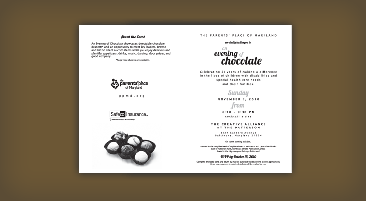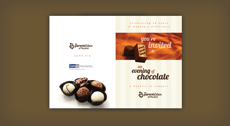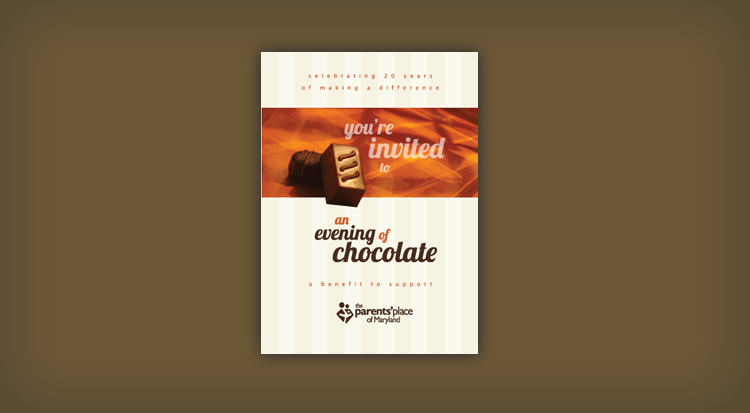 The Parent’s Place of Maryland needed an invitation as rich as the chocolate being sampled at their event. The evening celebrated 20 years of making a difference in the lives of children with disabilities and special health care needs and their families.